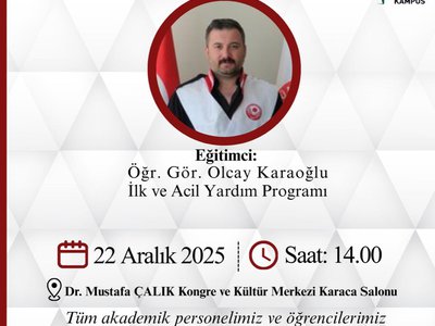Eğitim, İlk ve Acil Yardım Programı öğretim elemanı Öğr. Gör. Olcay Karaoğlu tarafından verilecek olup; spor yaralanmalarında ilk yardımın önemi, temel müdahale prensipleri ve uygulamaya yönelik bilgiler katılımcılarla paylaşılacaktır.